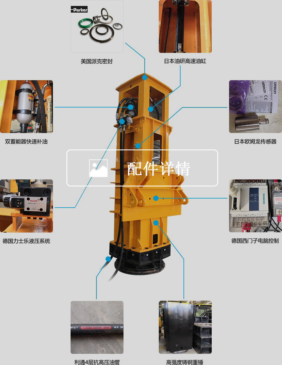 沖擊錘下落時采用電氣和液壓雙重保護,可靠性高。