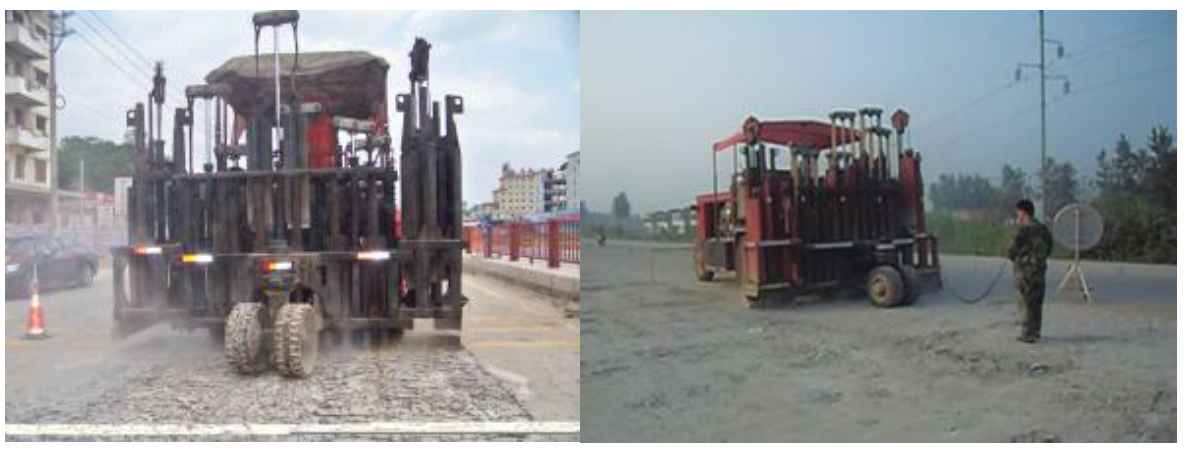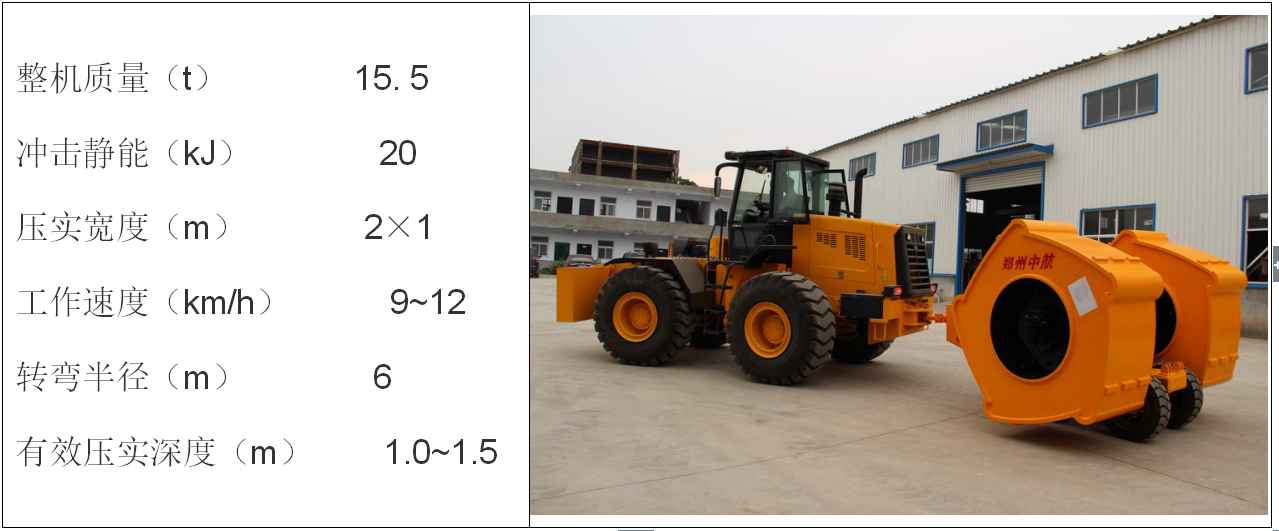 特點:低頻率、大振幅(不同于振動壓路機(jī)), 圓周式動力貫入,壓實效果好,費用成本低。
