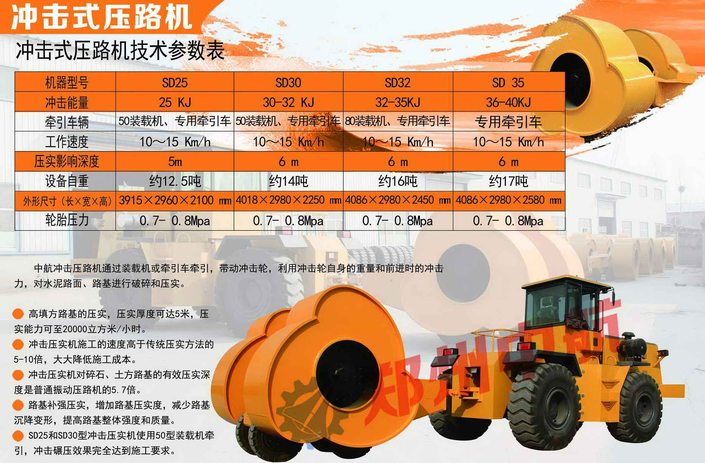 SD25、YCT25,就是代表3邊形25kj沖擊壓路機(jī)。