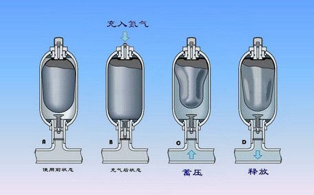 因此,沖擊機械液壓系統(tǒng)中設(shè)計蓄能器是系統(tǒng)共性,其目的是為了吸收這種壓力脈動和液壓沖擊,同時,在正常工作時吸收儲存供過于求的能量。吸收液壓沖擊壓力和脈動壓力是蓄能器*重要的工業(yè)應(yīng)用之一。