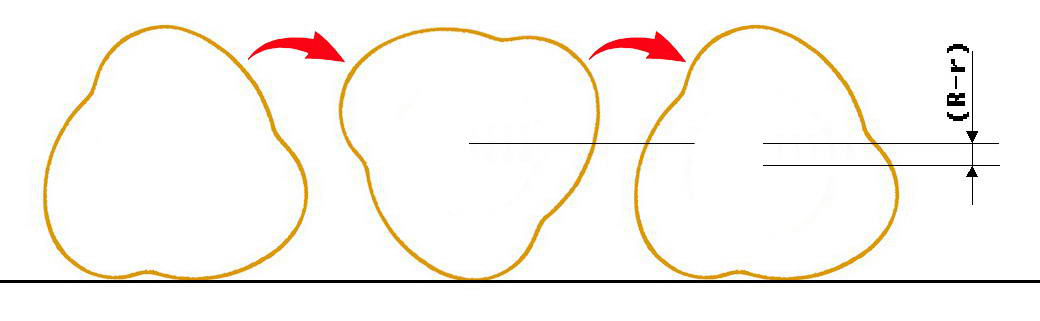 沖擊壓路機自身沒有動力,是通過前面的牽引裝置進行牽引,從而來進行工作。沖擊式壓路機沖擊碾壓輪滾動時,其質(zhì)心上下擺動,完成蓄能、釋放、沖擊 3 個過程,以產(chǎn)生的勢能和動能聯(lián)合作用于地面。利用多邊形滾輪的大小半徑產(chǎn)生位能落差與行駛的動能相結(jié)合沿地面對土石材料進行靜壓、搓揉、沖擊的連續(xù)沖擊碾壓作業(yè),形成高振幅、低頻率的沖擊壓實原理。所以沖擊壓路機碾壓輪滾動的同時,對牽引裝置有一定的速度要求。